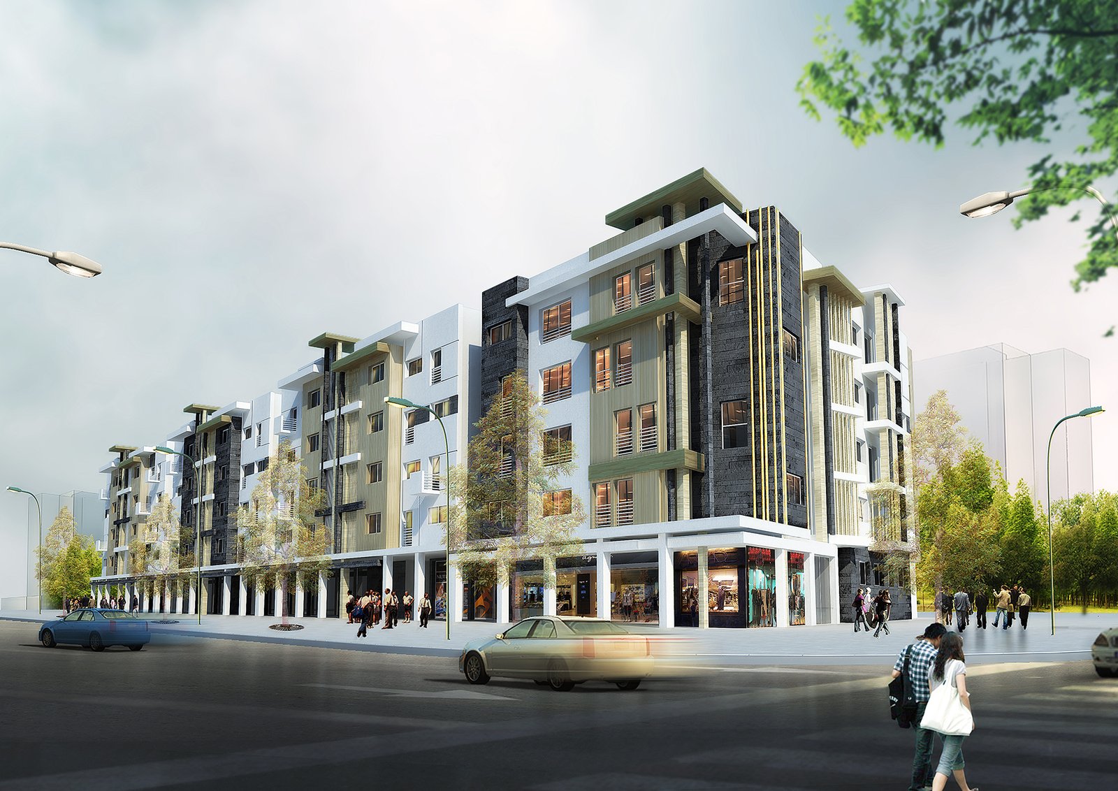 Sur le point de vue architectural, les façades présentent des lignes sobres et contemporaines. Au niveau des habitations, on distingue les logements de moyen-standing des logements sociaux.