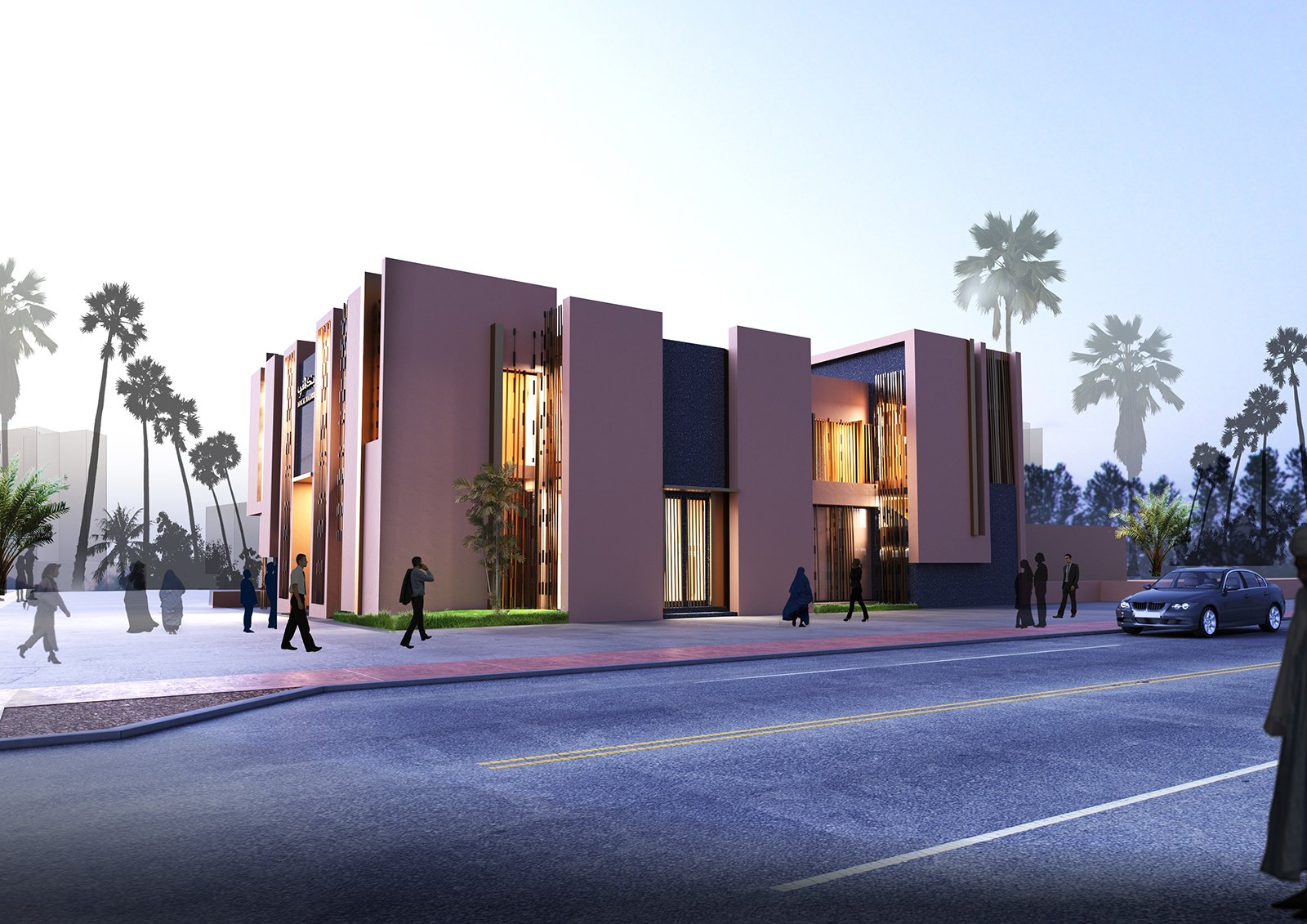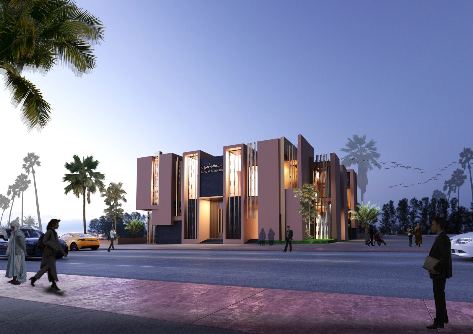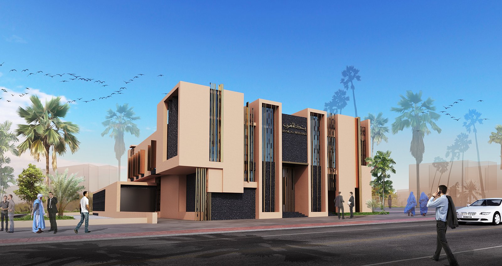 L’architecture des volumes intérieurs se caractérise par la sobriété, la décoration de ces espaces reprends des rapports inspirés des motifs marocains sur des matéraux contemporains , l’utilisation du bois