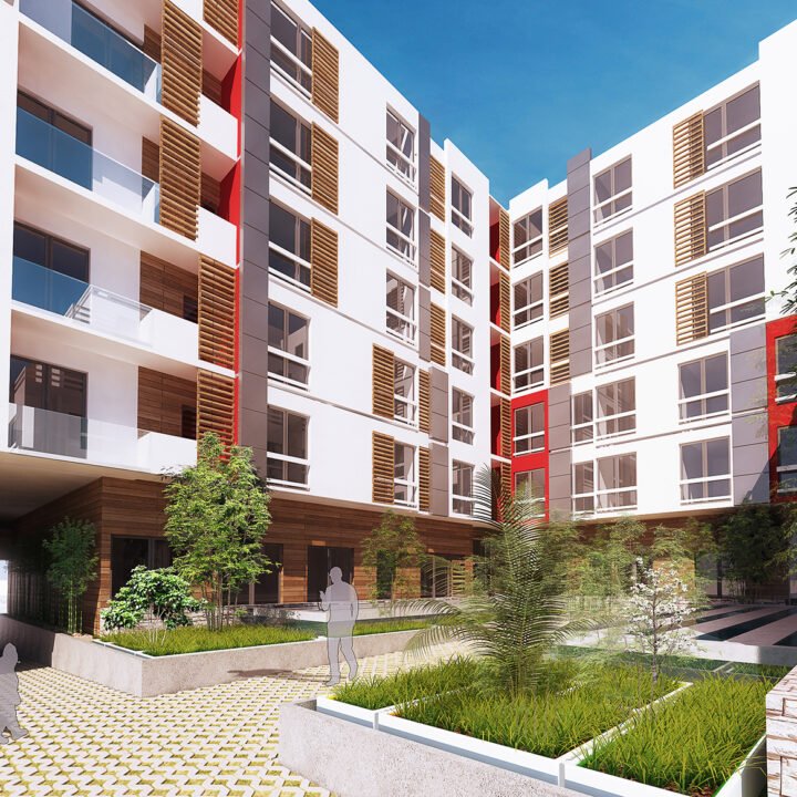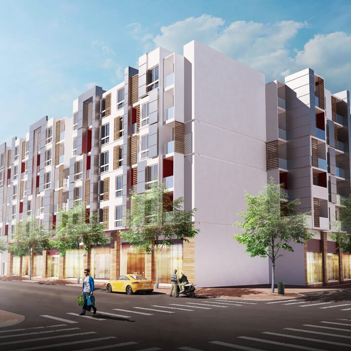 L’architecture de la résidence se distingue par des lignes épurées et des rapports équilibrés entre le plein et le vide; les persiennes et la couleur contribuent à ce rapport en créant un rythme au niveau de la façade. Une programmation variée a été envisagée pour cette résidence pour répondre aux besoins et exigences des usagers , on distingue ainsi 9 F1, 82F2, 20F3, les agencements et les prestations prévues pour les intérieurs des logements mettent en valeur l’esprit contemporain à la fois sobre et épuré de l’architecture.