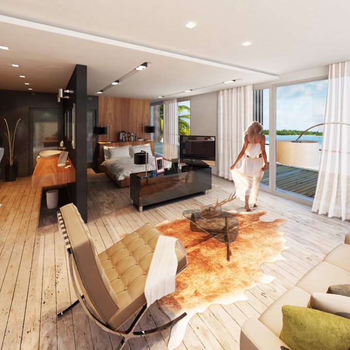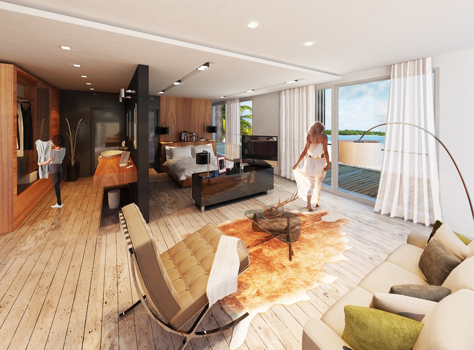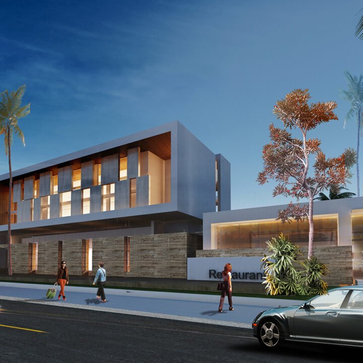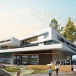 Le socle de l’Hôtel quant à lui a été conçu comme un rocher venant stabiliser l’ensemble. L’Hôtel vient ainsi imager les vagues qui rentrent en collision avec les rochers.