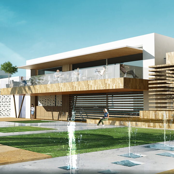 Deux vocabulaires architecturaux ont ainsi été développés. D’une part, la notion de stabilité du rocher et d’autre part la notion d’aérien des vagues. Ce travail se retrouve sur la volumétrie générale du projet.