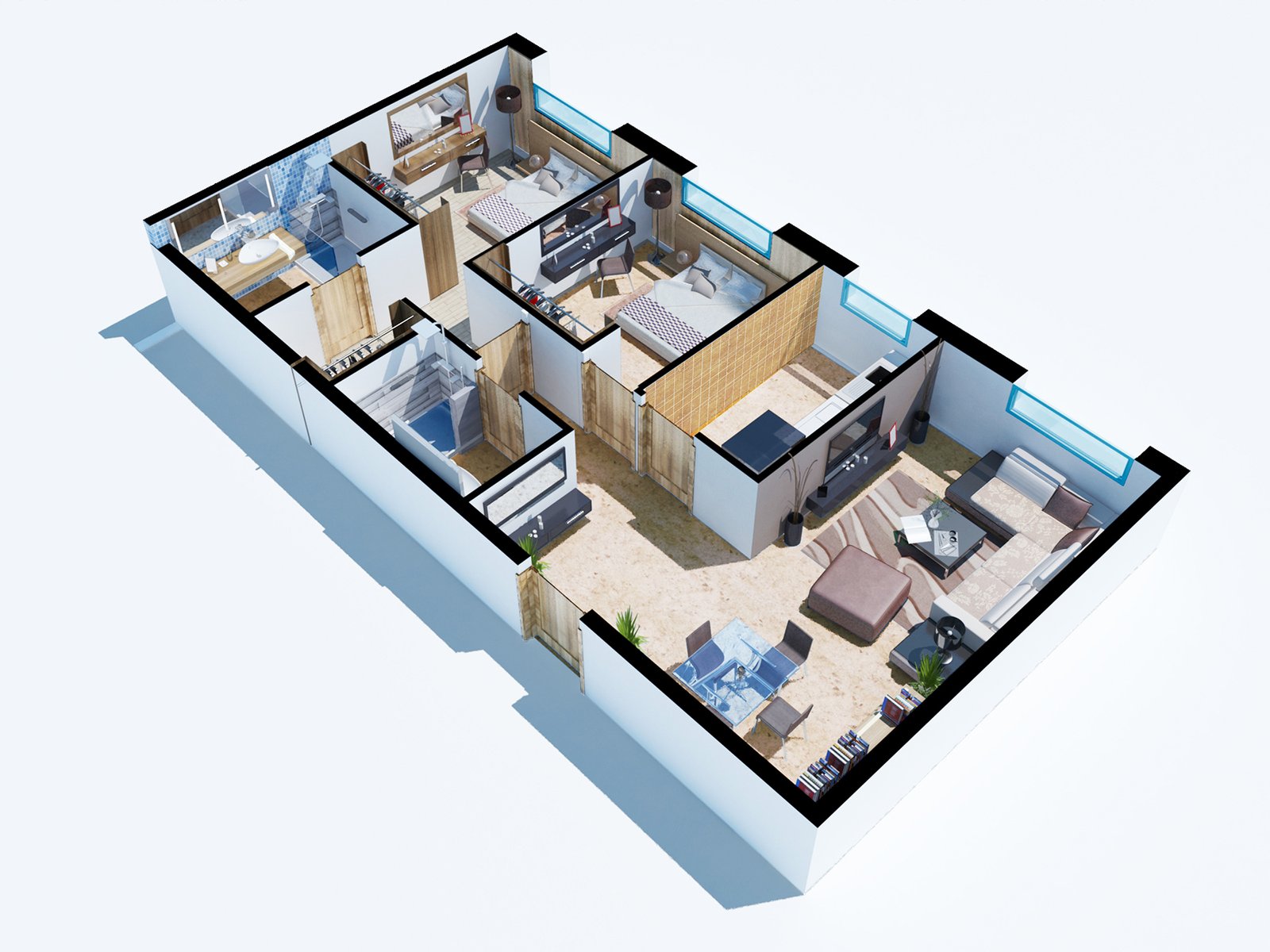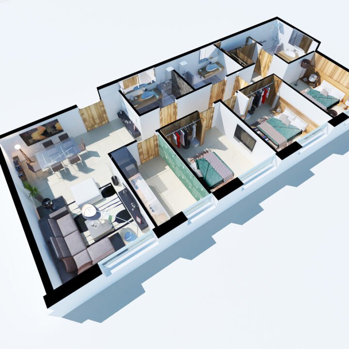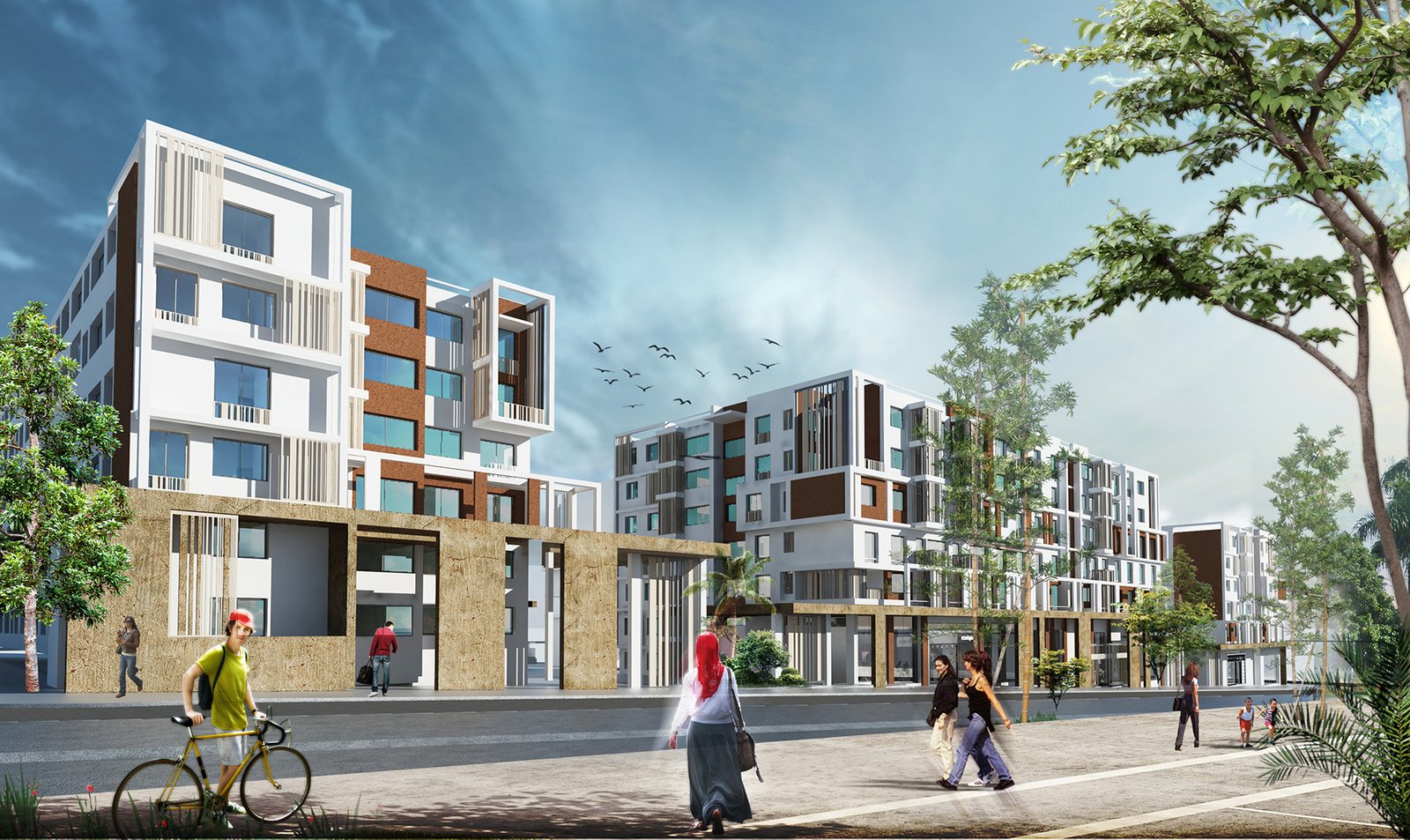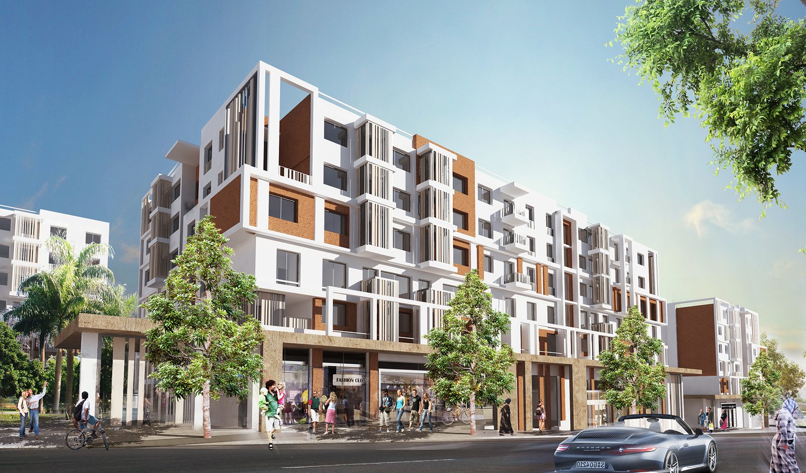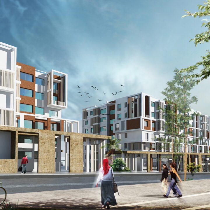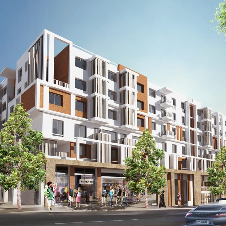 Une valorisation a été accordée au soubassement, que ça soit au niveau de la galerie commerciale ou au niveau du logement d’une profondeur de 2m, il s’agit d’un traitement imposant sur deux niveaux,