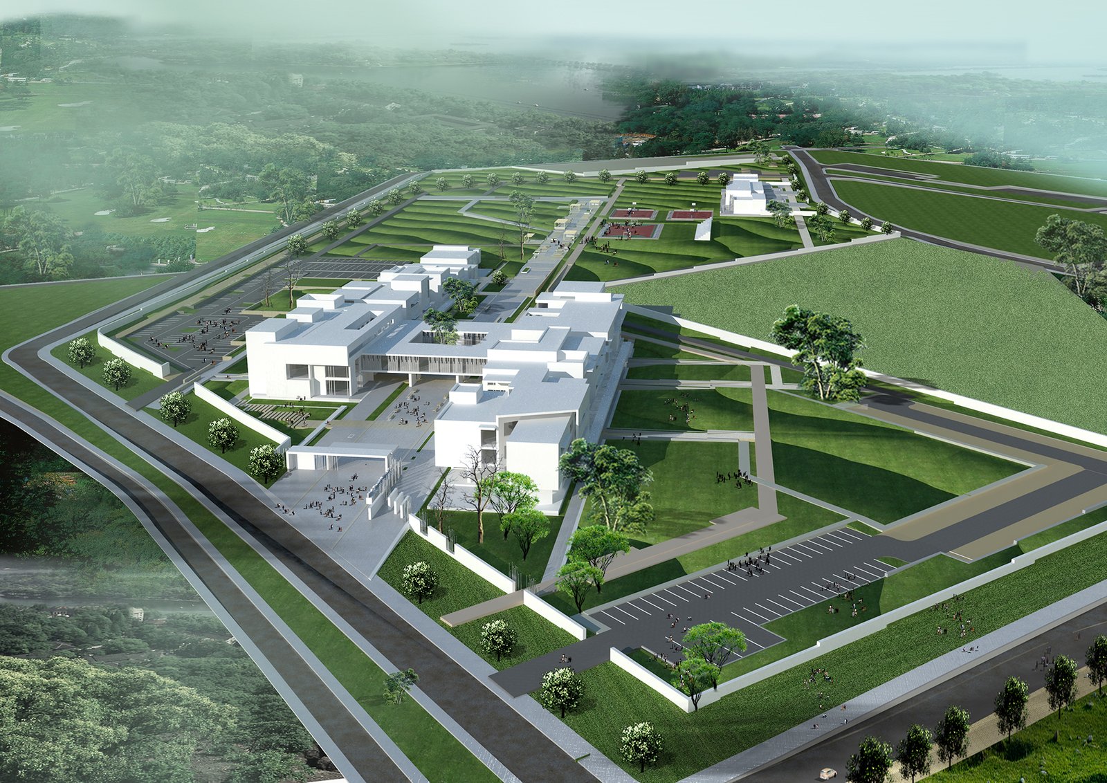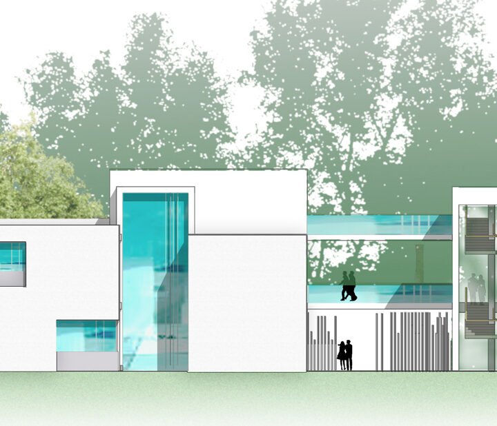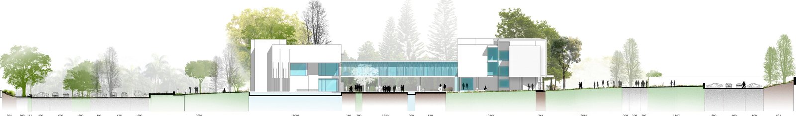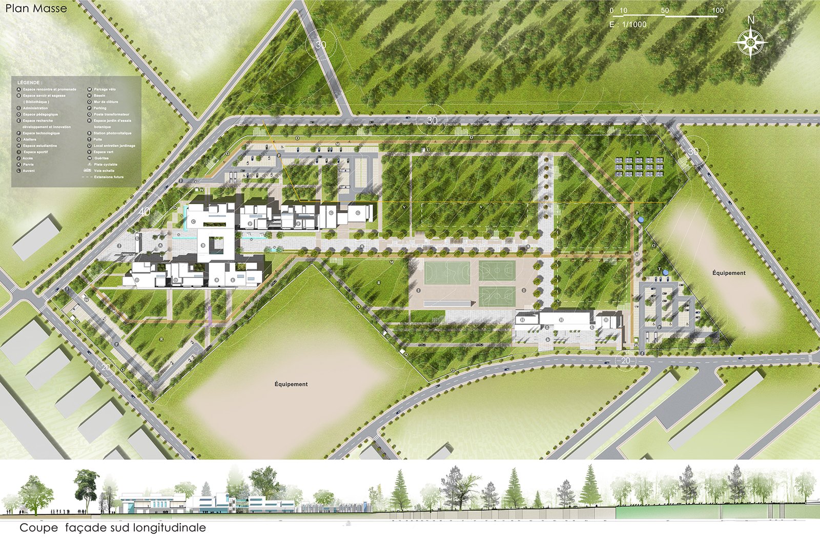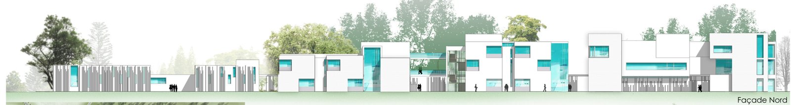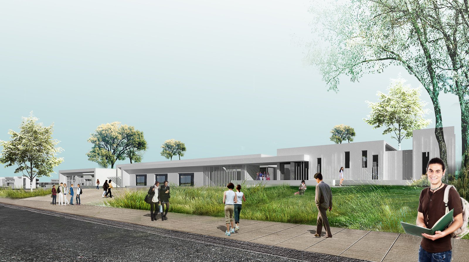 Ce lieu d’enseignement se divise en deux parties; l’enseignement théorique et l’enseignement pratique. Ainsi, le projet a été conçu tel un noyau monolithique qui a été divisé en deux entités suivant un axe dynamique. Le volume de la bibliothèque liaisonne ces deux programmes et constitue le noyau du projet.